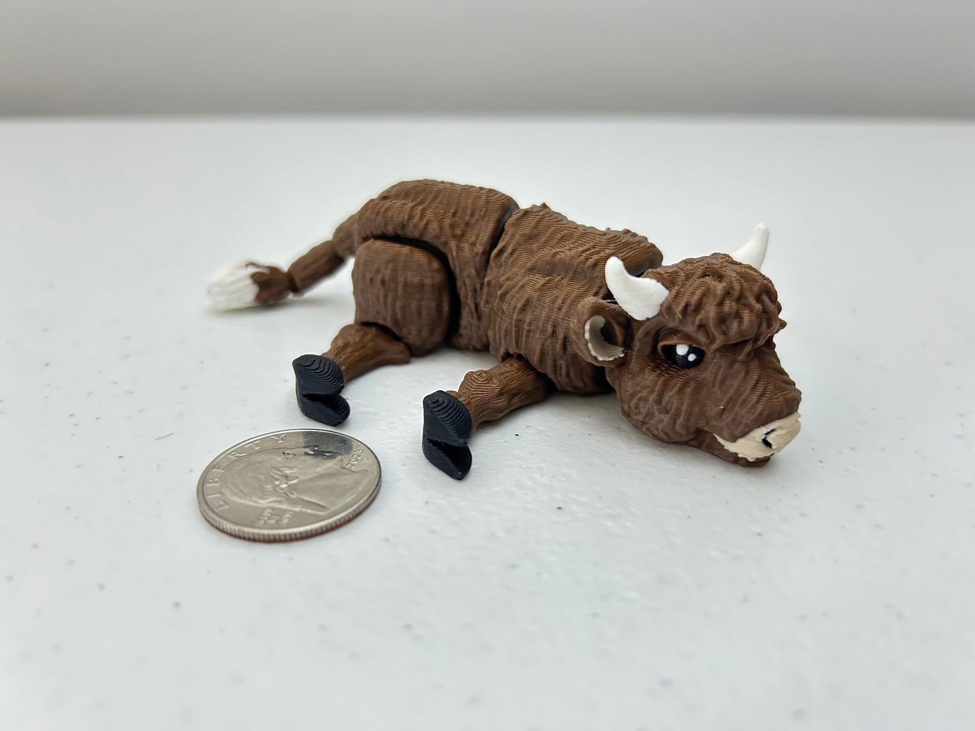 With its shaggy coat, sturdy stance, and that signature mop of hair covering its eyes like it's hiding a secret (or just avoiding emails), this miniature bovine is the definition of chill. It looks like it just wandered in from a scenic Scottish hillside and decided to stay forever—probably to judge your other figures with quiet dignity.