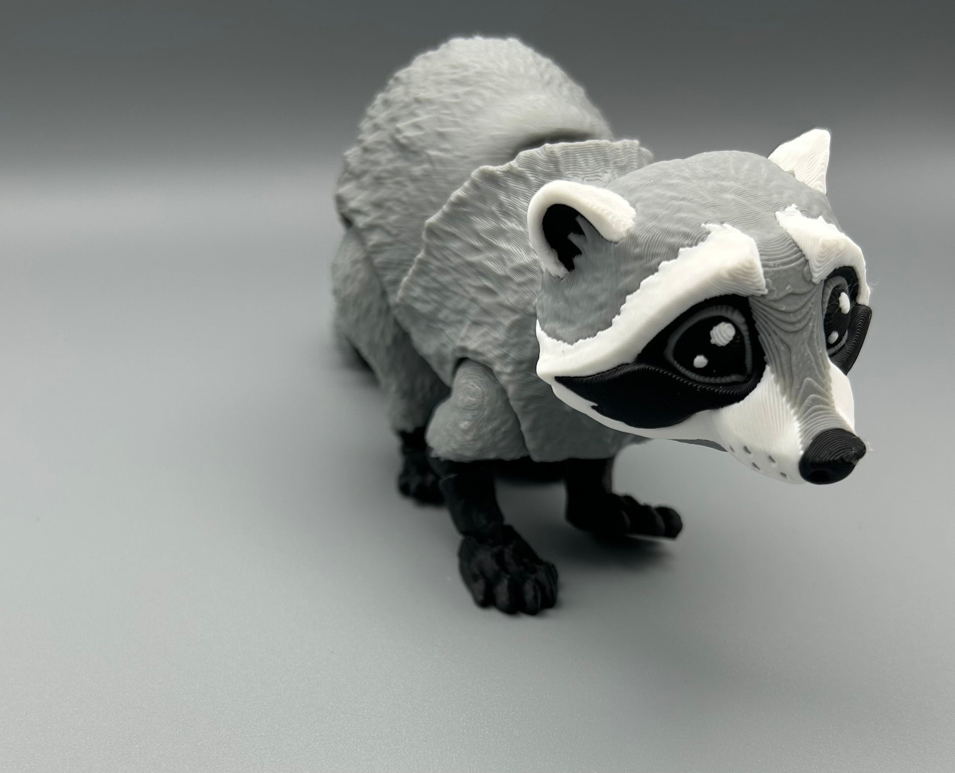 This raccoon figure is a pint-sized rascal frozen mid-heist—equal parts fuzzy-faced charm and pure, unapologetic mischief.