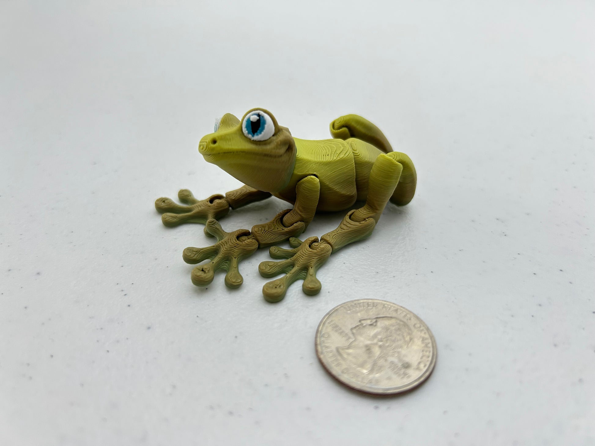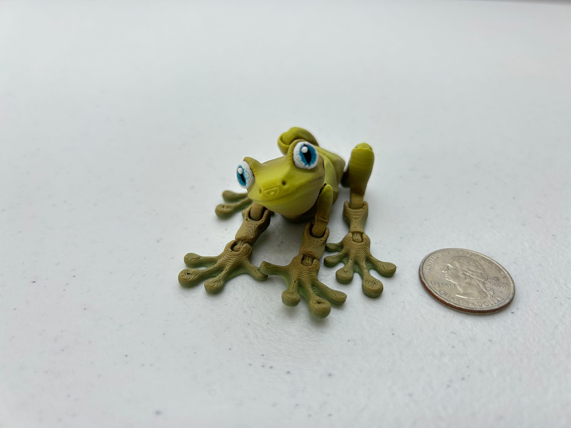This small tree frog figure is a tiny bundle of jungle agility and wide-eyed wonder—equal parts leaf-sized acrobat and bug-watching daydreamer.